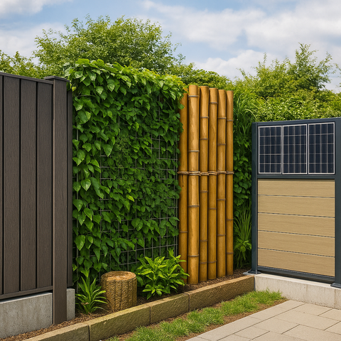 Bamboo is often dubbed “the plant of the future” for good reason: it grows faster than any tree and sequesters large amounts of CO₂. Sustainable bamboo fencing systems use treated poles or slats to create a warm, natural barrier: