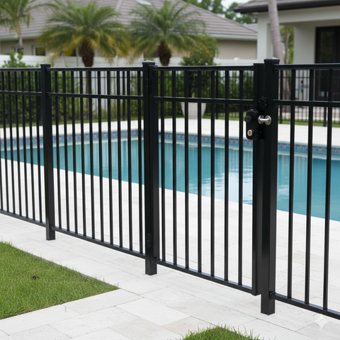 Ornamental steel: Provides security without losing aesthetic value — ideal for upscale pool environments.