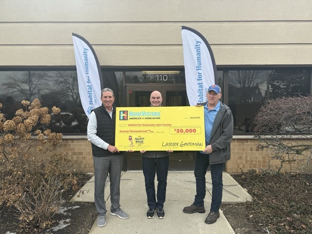 As a result, Lake-McHenry Habitat for Humanity, received the $20,000 donation from HomeVestors, which Larry Goodman, CEO of HomeVestors of America, was on-hand to present to Joel Williams, President and CEO of Lake-McHenry Habitat for Humanity at their Gurnee location.