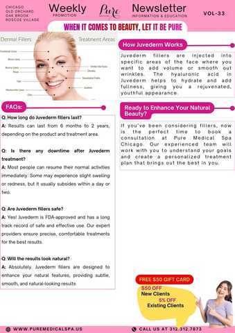 Are you looking to restore volume, smooth out fine lines, or enhance your natural features? Juvederm fillers might be the perfect solution! At Pure Medical Spa Chicago, we offer a range of Juvederm treatments designed to give you beautiful, natural-looking results with minimal downtime.